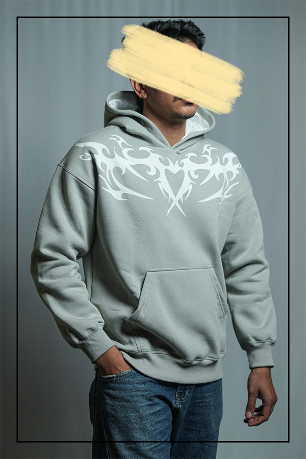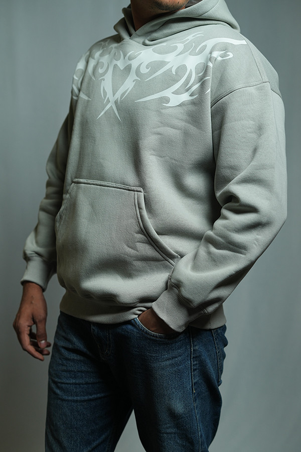 DRIFFTED Premium Hoodie Cotton-Fleece Oversized Fit Hoodie, 350 GSM, Silver grey, Glow In Dark.